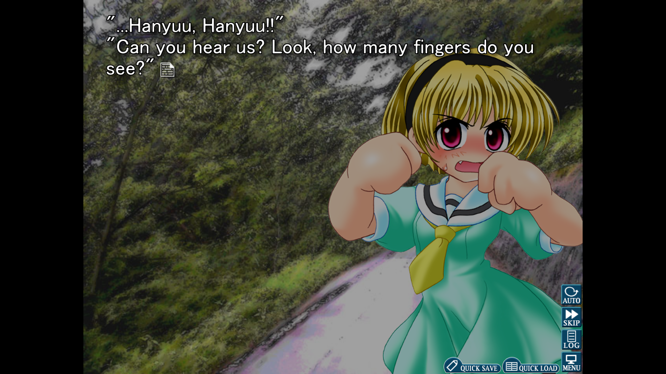 We can also apply this thought process to other genres of games, such as visual novels. Higurashi is the main example I want to draw on here. In the above screenshot, Satoko’s hand is drawn in a way that makes it hard for us to tell how many fingers she is actually holding up. This screenshot is pretty funny, but it’s a good illustration of my point. Ryukishi07’s art style here (and also in Umineko) is less “good” as in traditionally good, like perfectly generic bishoujo anime women, but it’s good in different ways: the original sprites in Higurashi and Umineko are much more expressive, and I reckon they have more character. It also allowed him to make the damn thing at all: sometimes you gotta do what you can well and be ok with things not being perfect for the rest.