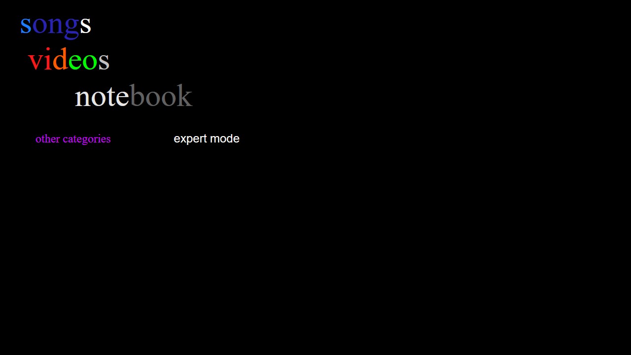 This site is extremely simple. It’s just some links in some different colours. Sections contain lists of every song/video/other work he’s done. It’s not hypertext fiction, but seeing that it was possible to make a website that was just this was a big moment for me when I was younger. A lot of Bill Wurtz’s earlier work was just him trying to make things as simply as possible to get the hang of making anything, and then expanding scope slowly as he went on, even if he wasn’t sharing everything immediately. That’s why his website is “barebones”.