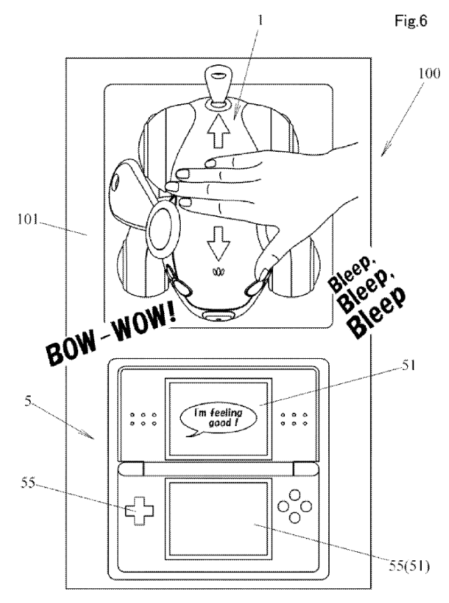 However, what might not be interesting to you is all the legalese in the patent US8814627B21, also known as “Toy set, game control program, and game device and toy communication system,” also also known as the patent for Wappy Dog. I am no legal expert but I read this document to the best of my ability (i.e. I skimmed it) in order to figure out some more technical details and the design priorities of this “toy set and game control program” as a whole. After all, if they figured it was important enough to patent, it can inform some of our understanding about their priorities. Right off the bat, though, Google Patents says it expires in 2031 but in the below diagram you should be able to see a GLARING issue that should cause the patent to be retracted and left invalid immediately: he never says “BOW-WOW.”